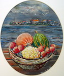 1999impressie naar bijbels thema : Prediker 12 vers 6 en 7 Vers6 :Voordat het zilveren koord losgemaakt en de gouden lamp verbroken wordt, voordat de kruik bij de bron verbrijzeld en het scheprad in de put verbroken wordt. vers 7 en het stof wederkeert tot de aarde, zoals het geweest is, en de geest wederkeert tot God, die hem geschonken heeft.
